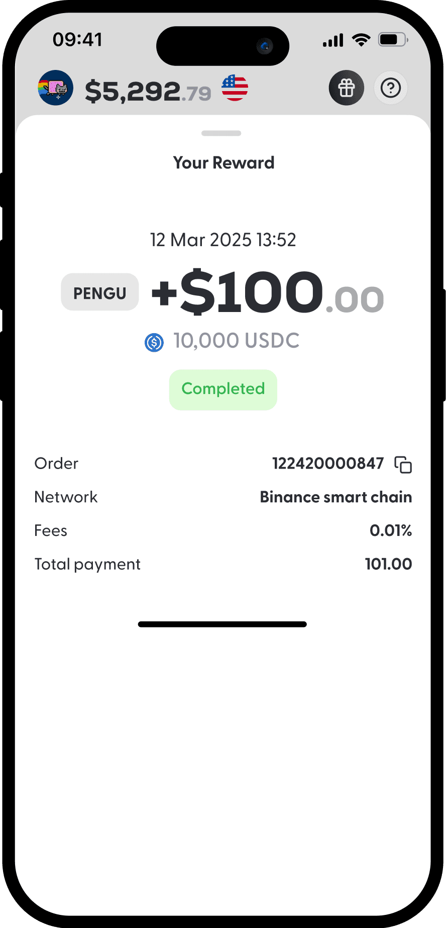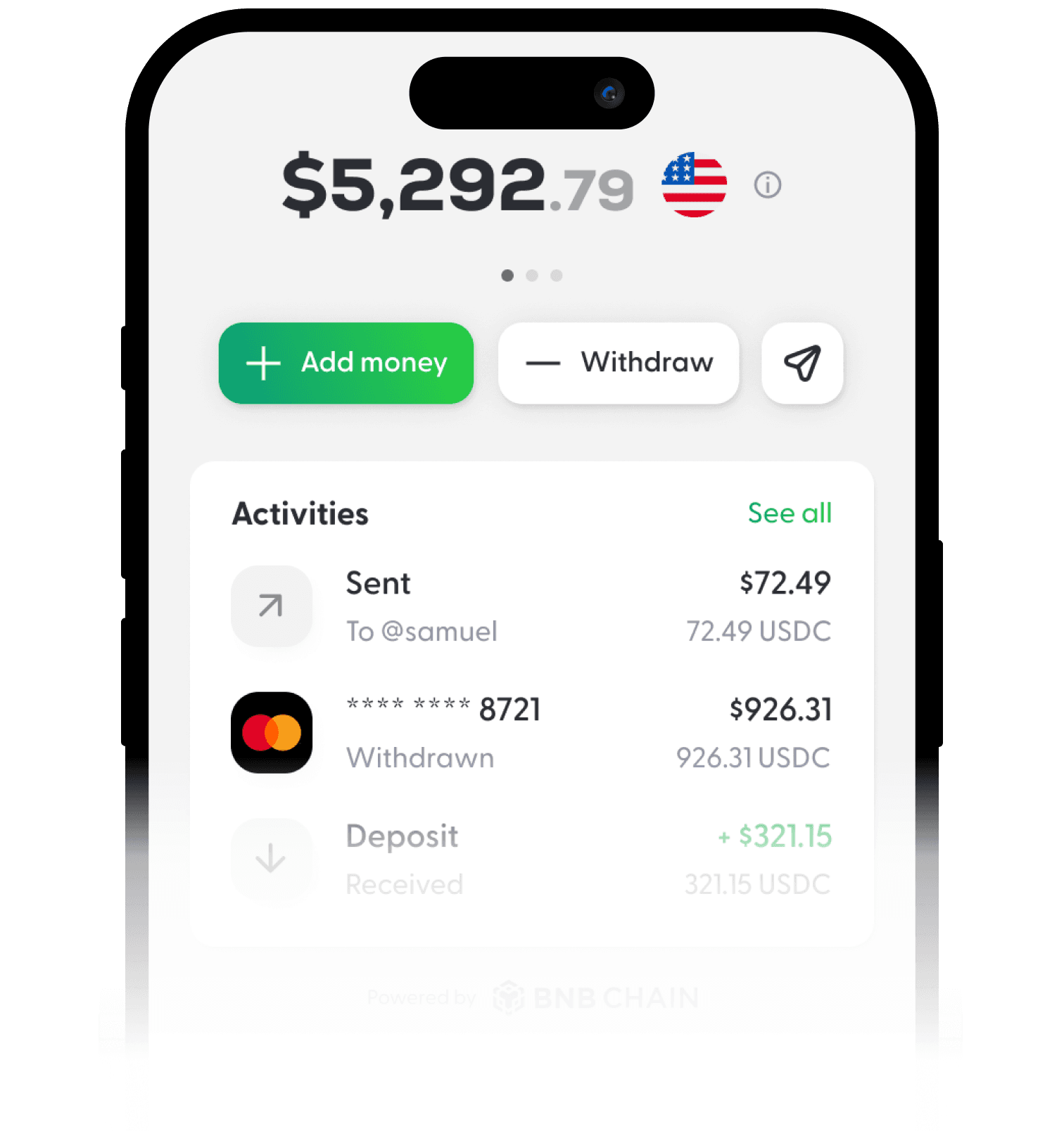 Using your Debit Card, Bank Account or other available payment method fund your account. The money instantly converts to a Dollar Stablecoin