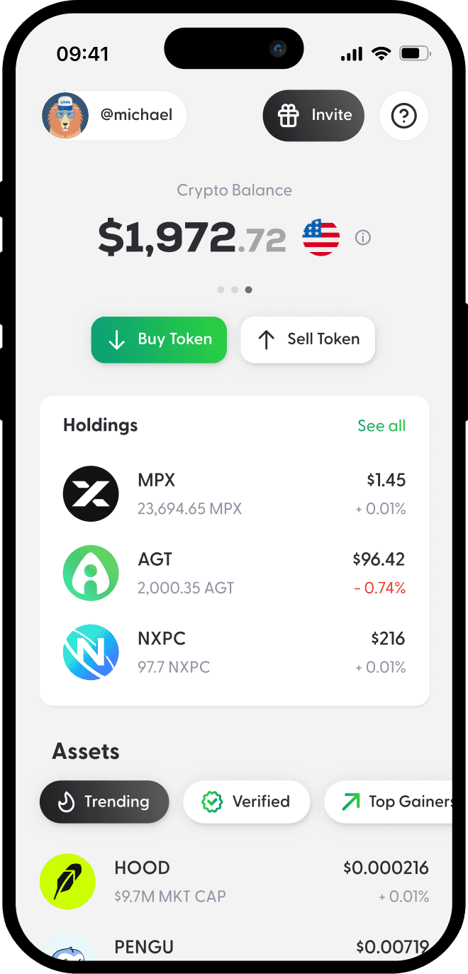 Using your Debit Card, Bank Account or other available payment method fund your account. The money instantly converts to a Dollar Stablecoin